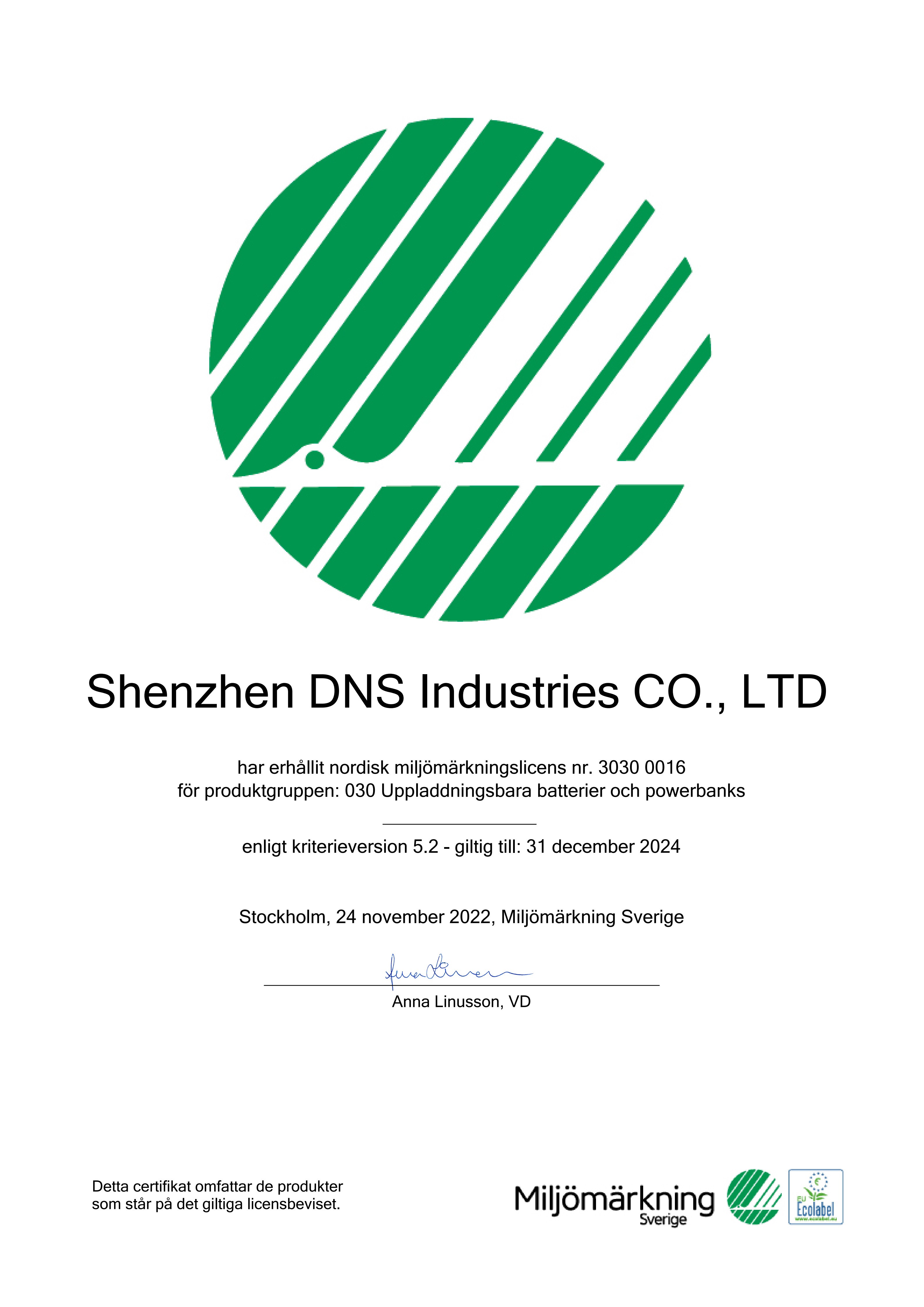 11月25日,大发在线手机版(大中国区)获得北欧白天鹅生态标签(Nordic Swan Ecolabel)认证, 成为全球首个获得充电宝北欧白天鹅生态标签认证的公司。庆祝大发在线手机版(大中国区)加入白天鹅家族,共同为绿色转型而努力。